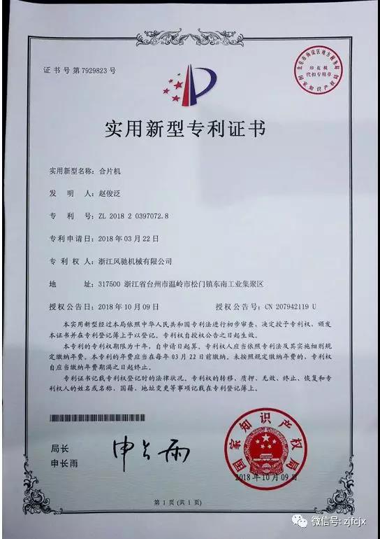 2018年11月榮獲臺州市知識產權局頒發的“臺州市專利示范企業”
