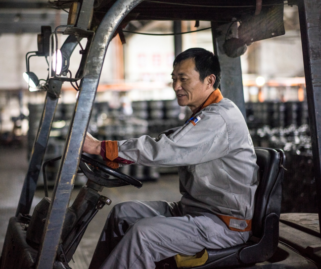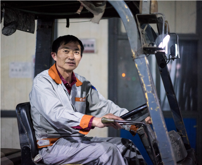 走過涂裝車間你總會聽見這幾句話,“師傅,麻煩叉一下這框毛胚”,“師傅,麻煩幫我叉一下這框產(chǎn)品到下掛處”,你就會看見劉師傅在嫻熟的操作下,鏟腳很準(zhǔn)地插進(jìn)鐵框下面的支架,提起,倒車,轉(zhuǎn)彎,開出車間,穩(wěn)穩(wěn)地放到指定地點上,整個過程一氣呵成。這就是我們的叉車師傅劉曙光。